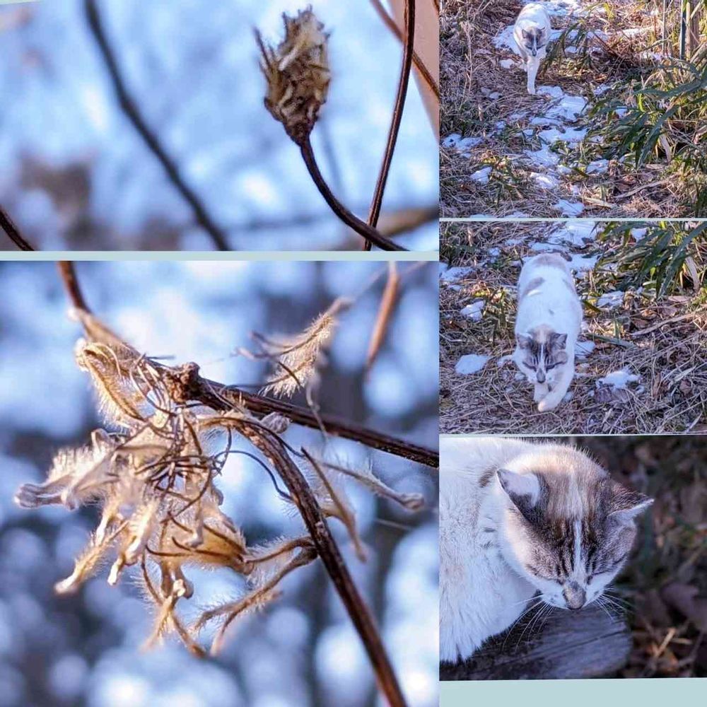 朝アーチのクレマチスの綿毛を写していると、デッキでシロお母さんと暖かく寝ていた庭パト助手チロが「どれどれ?」というように走ってやって来ました。