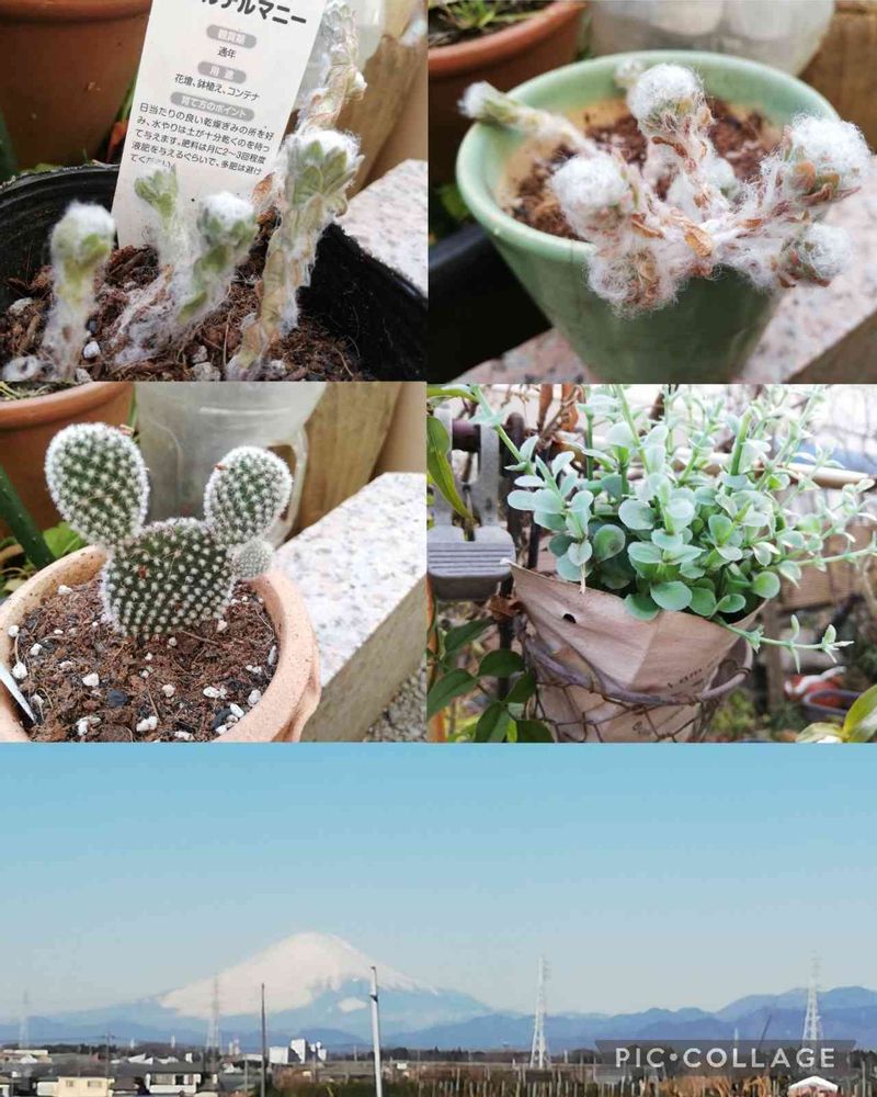 ウェルデルマニー 時期により緑の茎が白い毛で覆われる 名前の通り うさぎの耳に似ている バニーカクタス ウチワサボテンの 小型の品種です 葉っぱが青々としているミセバヤ🎵 富士山 朝のうちは見えますが 昼からは天気が良くても 見えなくなってしまう💦