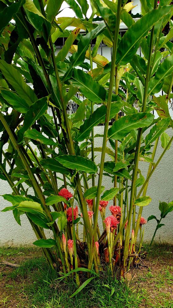 レッドジンジャーなどとはまた違う咲き方。葉っぱの林の中にまっすぐ咲いて。面白いね。😳💕