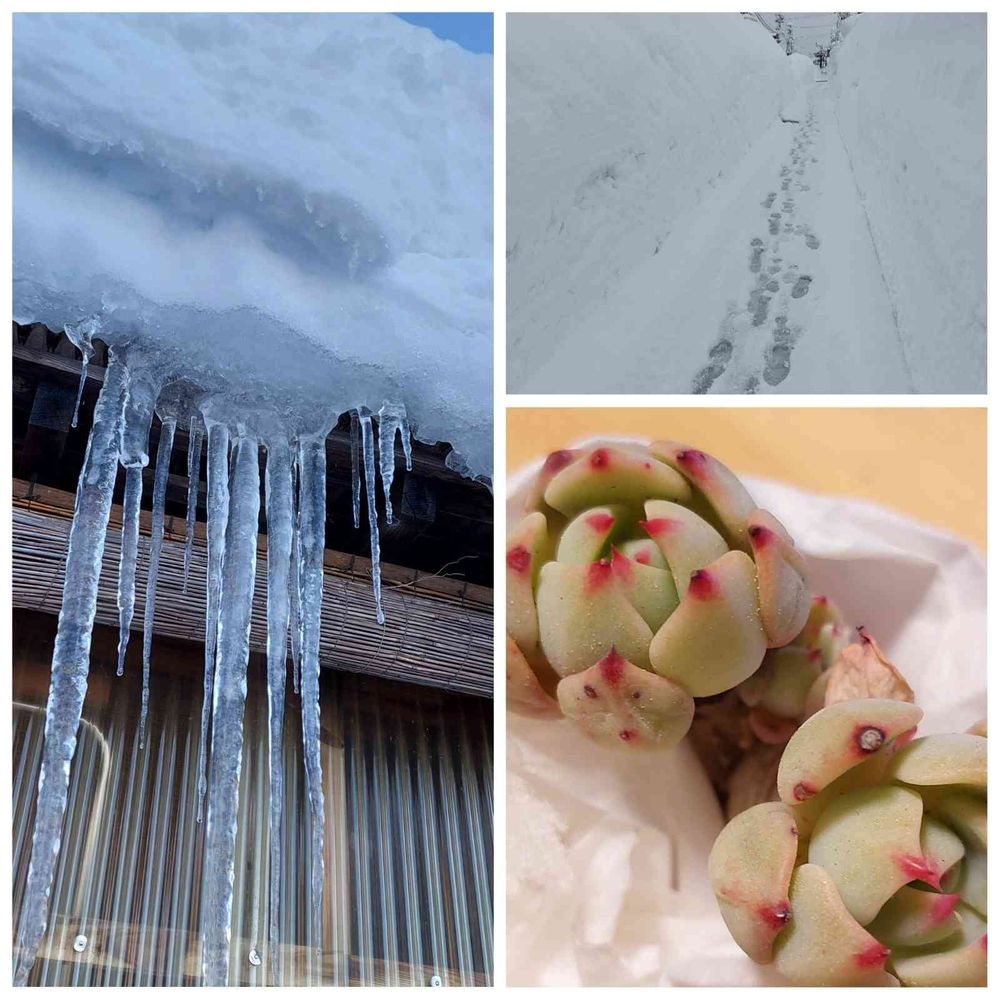 慣れないコラージュ作成、氷柱、子供たちの通学路、七福神美尼