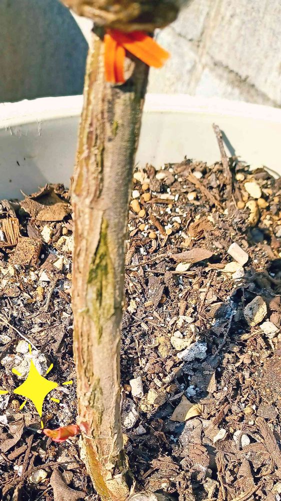 ☝️古株🌹の取り木をしている茎の足元に🌱🙌