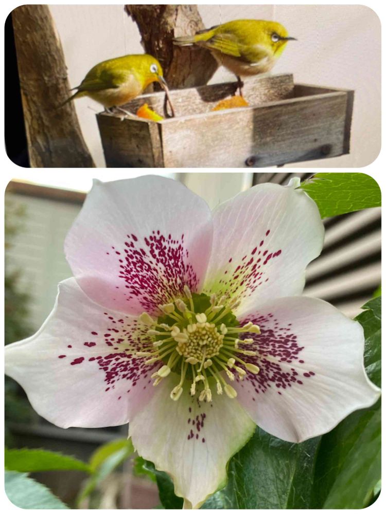 メジロ&クリスマスローズ 𓅫 ͗ ͗ ❀˚‧
