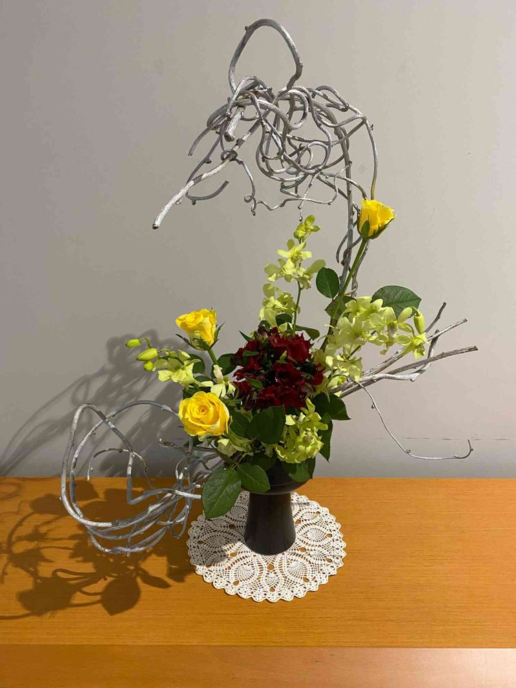 蔓のクルクル具合いがいい感じで気に入っているけど、真ん中の赤いアルストロメリアが、写真では黒っぽく写ってしまって残念!