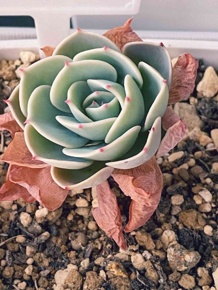 うちの七福神も同じ姿になってます🪴枯葉が気になるけどぐっと我慢してカリッカリになったものだけ取ってます。存分に水やりするまであと少し頑張って欲しいですね