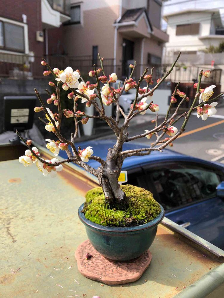 2018年1月から育てている「米良梅」です。今年も咲き始めました。寒さの関係でしょうか、他の梅鉢よりも遅い開花でした。