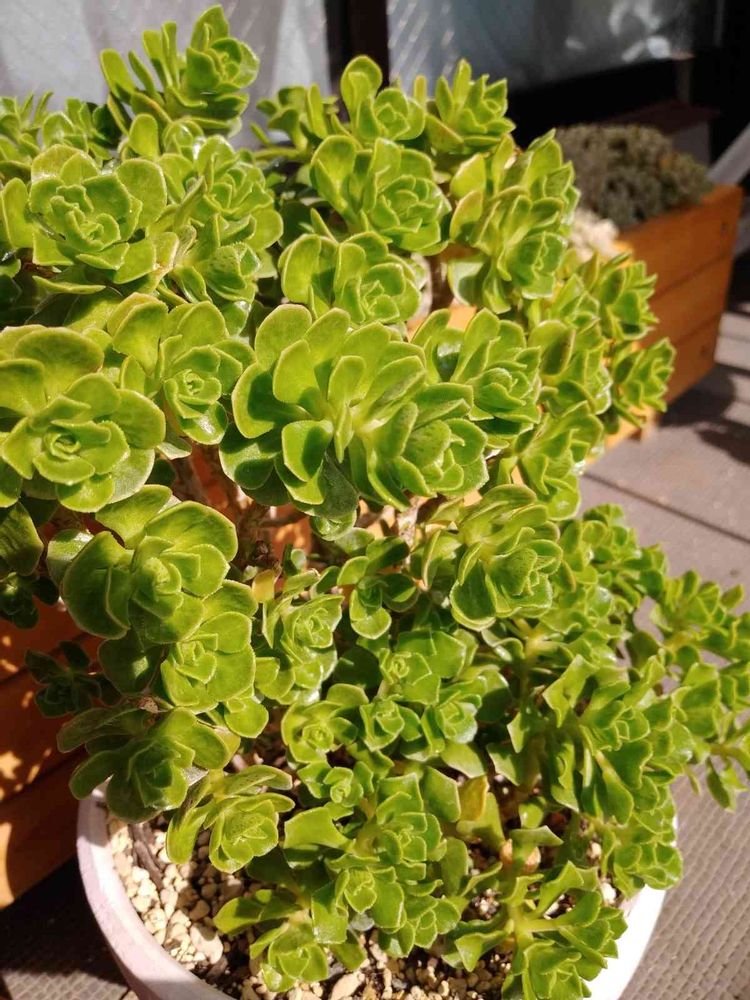 バルコニー/ベランダ,リメ缶・リメ鉢,アエオニウム チョコチップの投稿画像