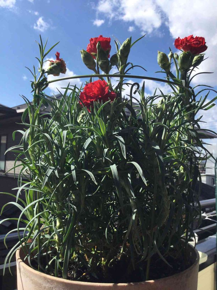 去年娘からもらったカーネーション、はじめての冬越しです♪ただ…花びらに白い斑点模様が出てきたのは、温室で蒸れたのかしら🤔