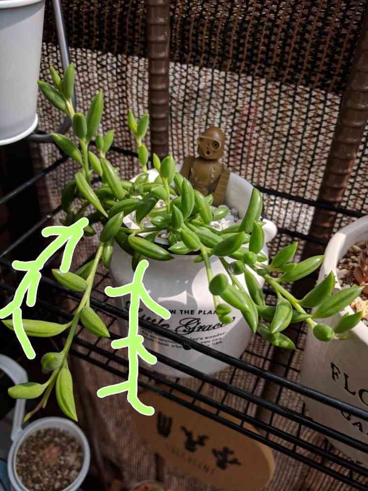 元々の茎を切って増加計画してますが、下に垂れるのが無くなったからか、上の方の新しい茎や葉がイキイキもりもりになってきてます😚💖