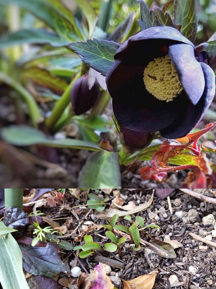 我が家に来て3年目クリローのブラックシングルさんが開花しましたが地面スレスレ咲きで去年よりかなり小さいです😂