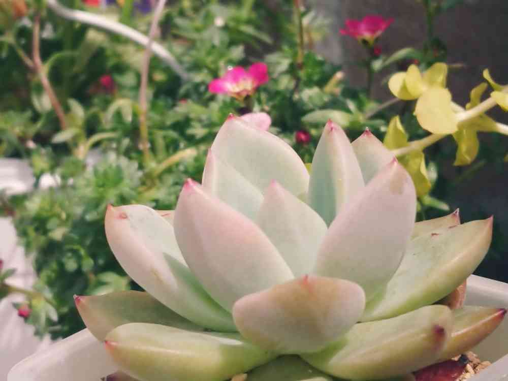 シャ―ロットってわりとよく見る多肉ちゃんなんだけど、この子成長遅くて、モタモタしてたら、急に葉裏が薄ピンクになってびっくりしたよ🎵かわいいよ。
