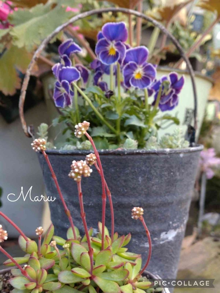 バケツ鉢に寄植えされてる方がいて、素敵だったので、入ってた多肉チャンお引越ししてもらいました😅👍
