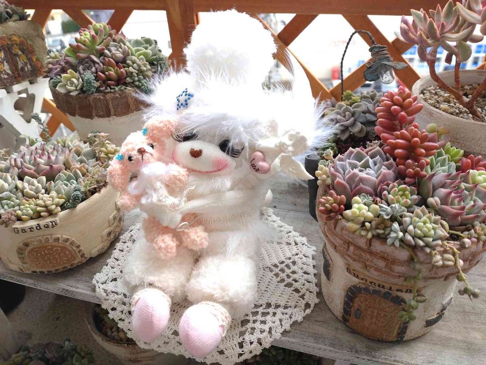 真っ白な天使のモンちゃんがちっちゃなプードル🐩を抱っこしていてもう可愛くてたまりません💖