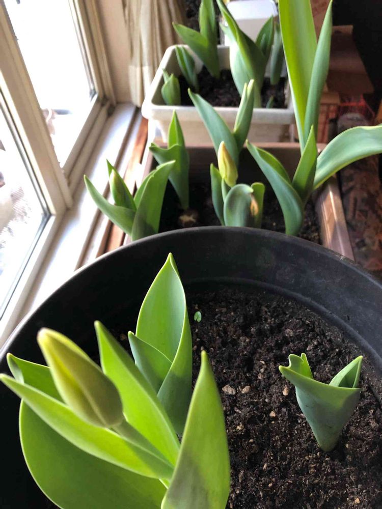 我が家のプランターのチューリップ🌷は まだまだ 小さい芽🌱
