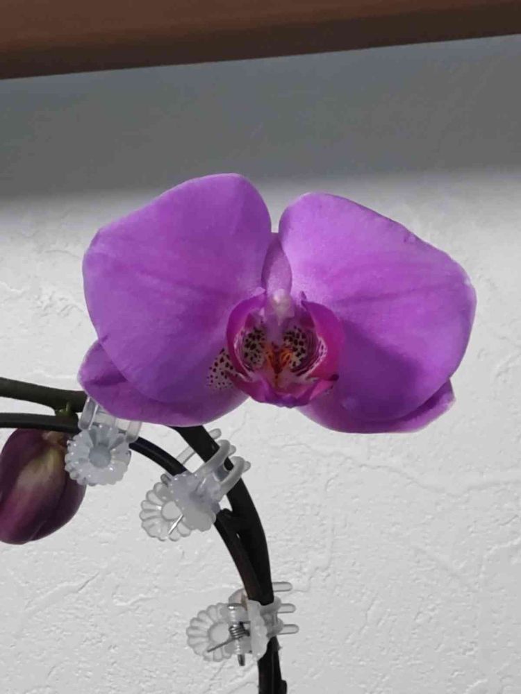 紫の大輪胡蝶蘭が欲しくてメル狩りしたやつ。やっと開花したけど、う~ん🙄紫⁉️濃いピンクみたいな⤵️なんかちょっと違う😓😒春になったら買い直しかな😩どうしよ😥