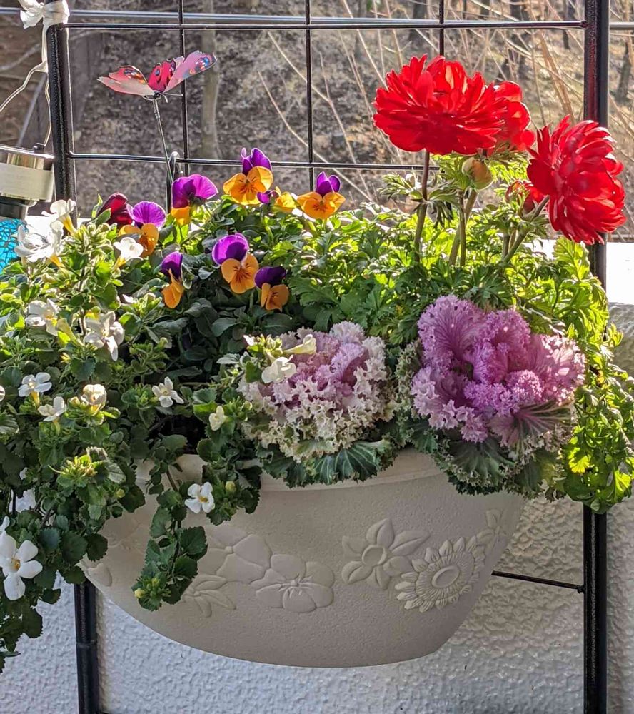 ベランダでも外に近い場所にハンギングしているので夜はアネモネに不織布をかけていました☺️