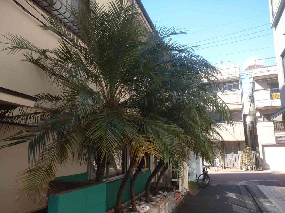 西回りの寒波が来たらてきめんに気温が下がってしまう地域だったので、すくなくとも東京よりもヤシの越冬は難しい地域でした。