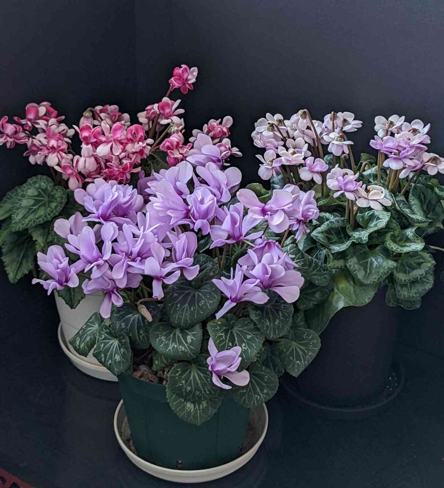 手前のシクラメンは一昨年ホームセンターで購入したもの。