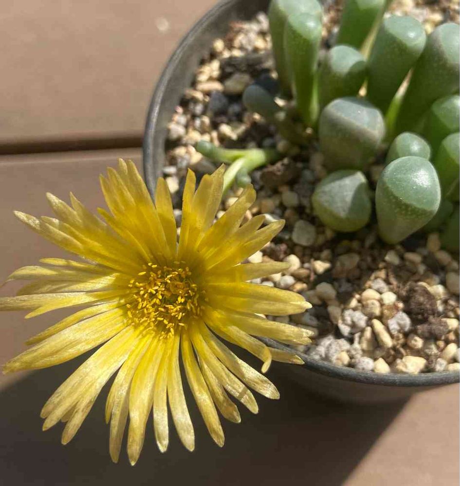 購入した時はフェネストラリアのみの表記でしたが、黄色い花が咲いてやっと五十鈴玉と判明しました。