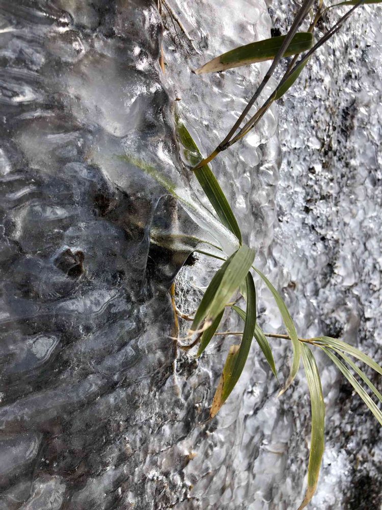 冷たい氷の中でも、頑張って✊😃✊いる笹、春間近を想わせる