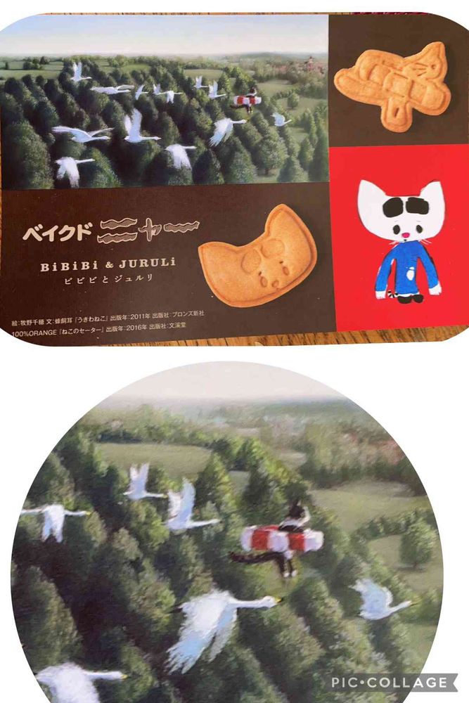 浮き輪に乗って🕊🕊🕊さんたちと空中遊泳している🐈の型のクッキー🍪です。