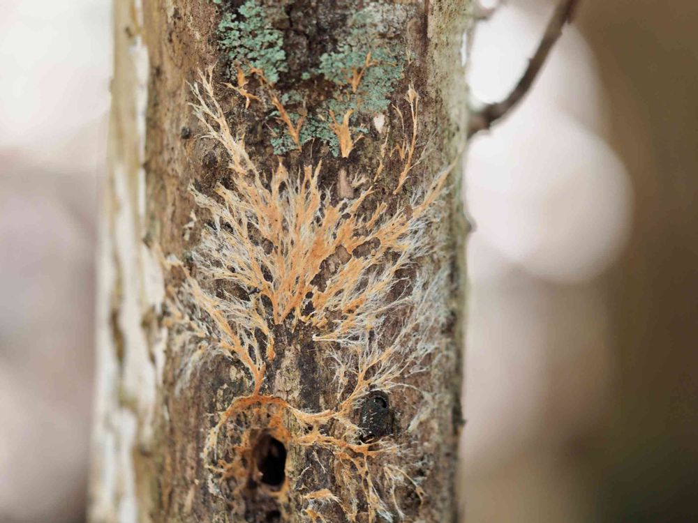 菌糸の枝と合わせてまるで木のように見えますね。
