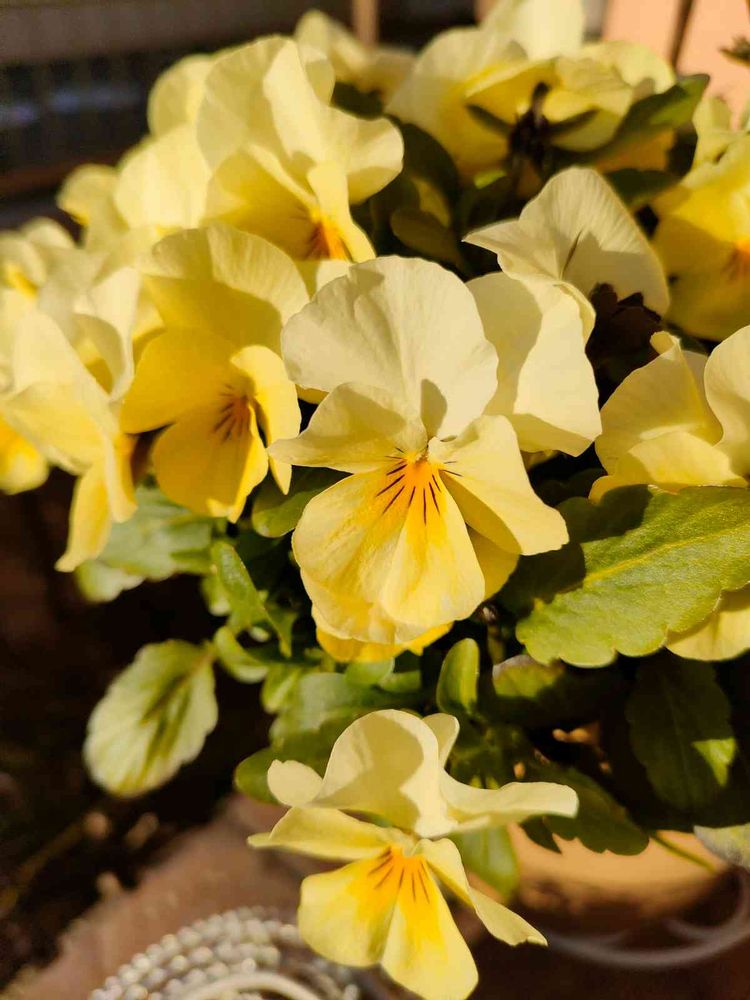 とっても風が強く、冷たい。お庭仕事は、今日も断念…。そんな中、元気が出るような黄色、種から育てたビオラがもりもりで順調。とってもいい。