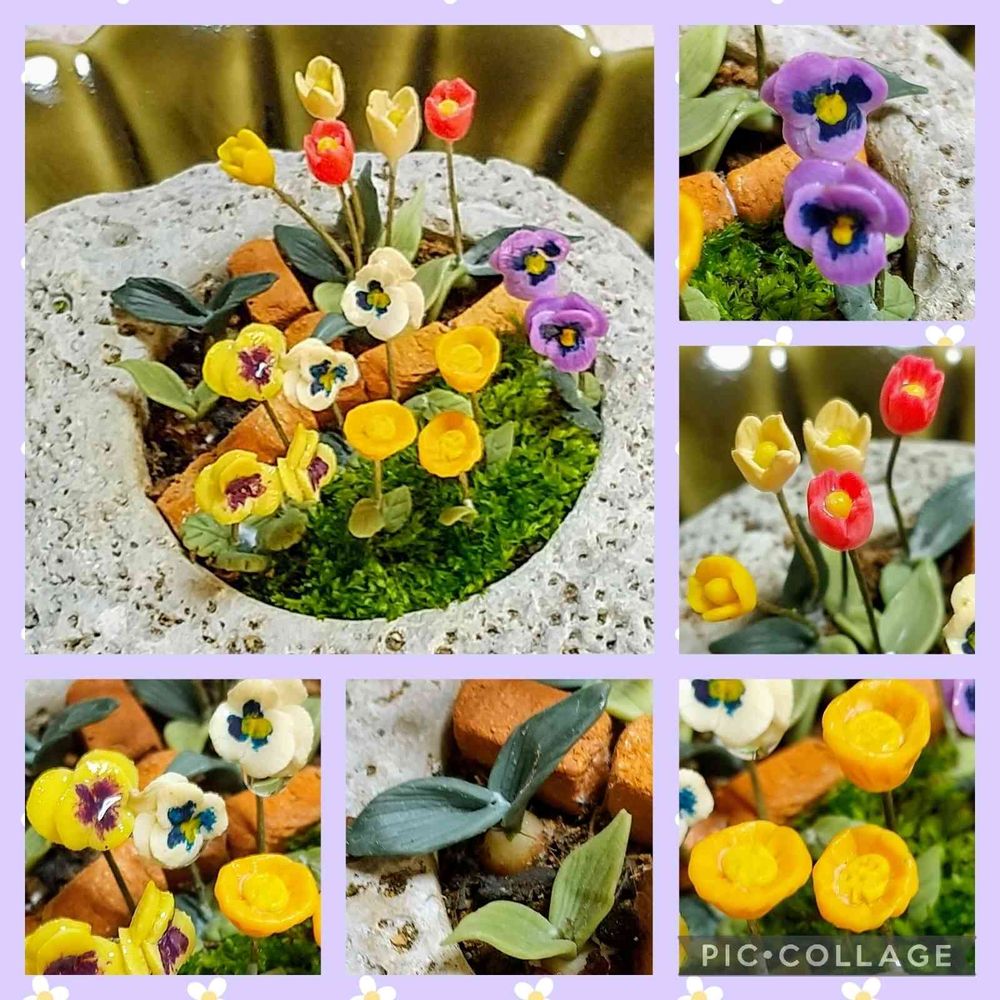 今度は、妹が作ってくれたお花のピックで、春の花壇をイメージして作りました🌷🌷🌷✨✨