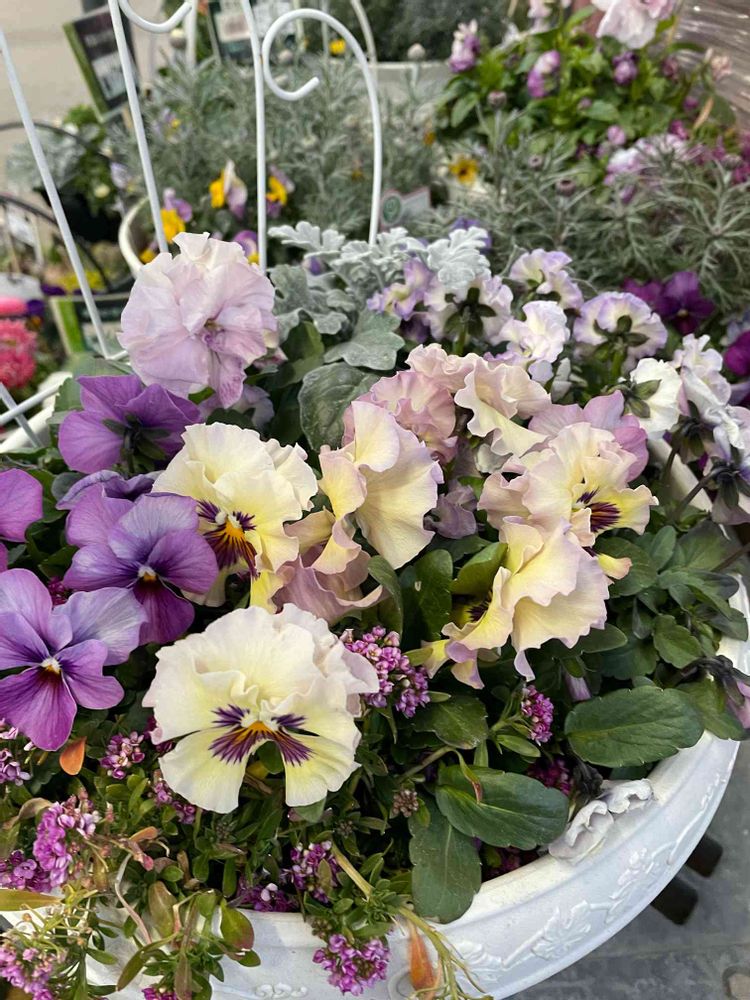 2022.1.3に投稿したフリル咲きパンジーの寄せ植えの今日の姿です😃