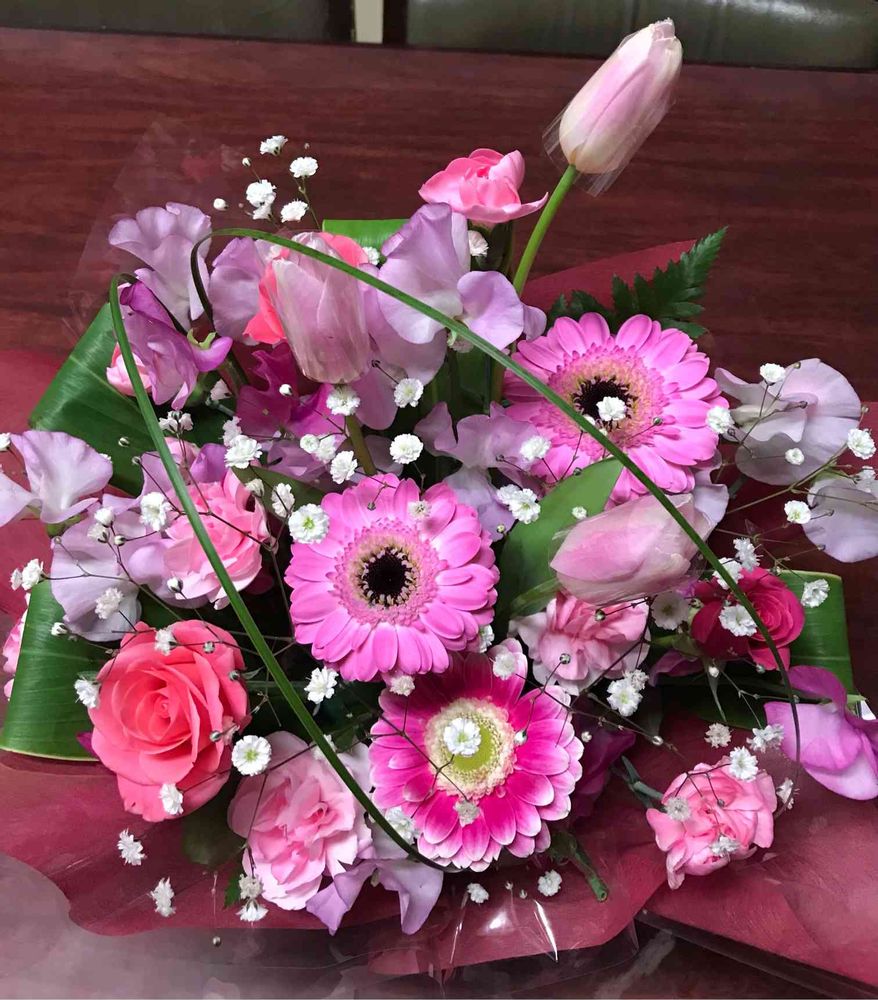 昨日頂いた、春の、フラワーアレンジメントです。優しい花達に、癒されます。
