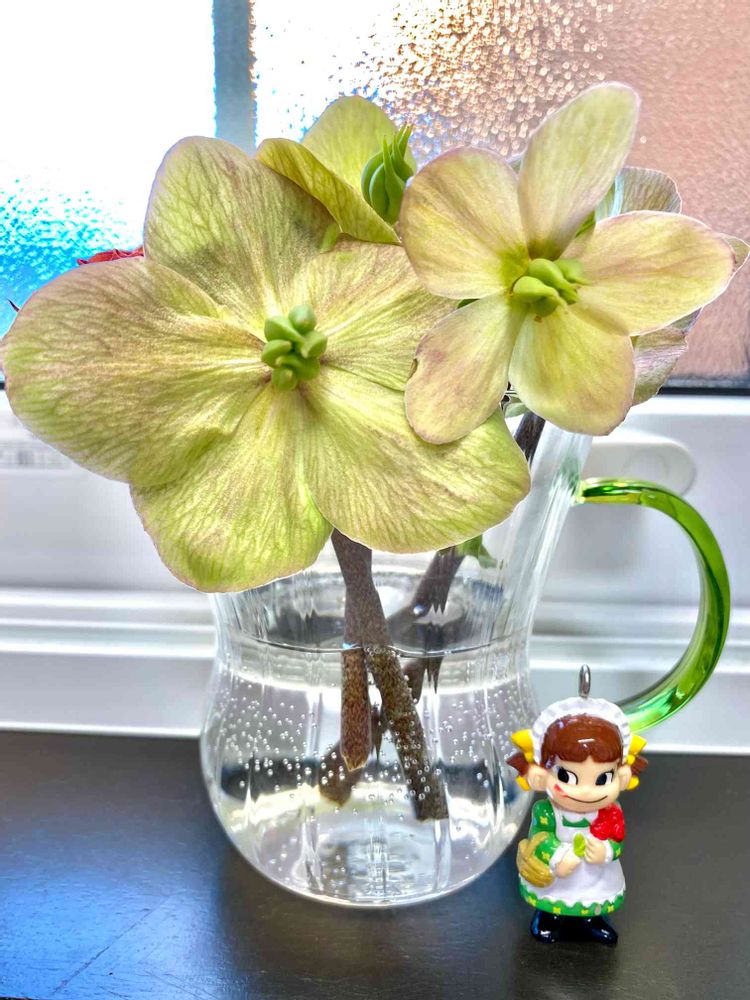 2月15日投稿のクリスマスローズを✂️してキッチンの窓辺に飾っています💐