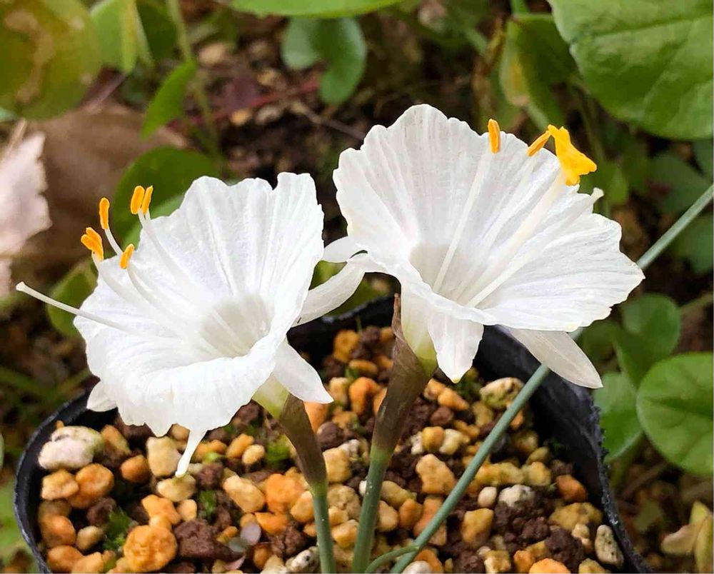 原種スイセンのカンタブリカス クルシーです✨雪のように真っ白です❄️。