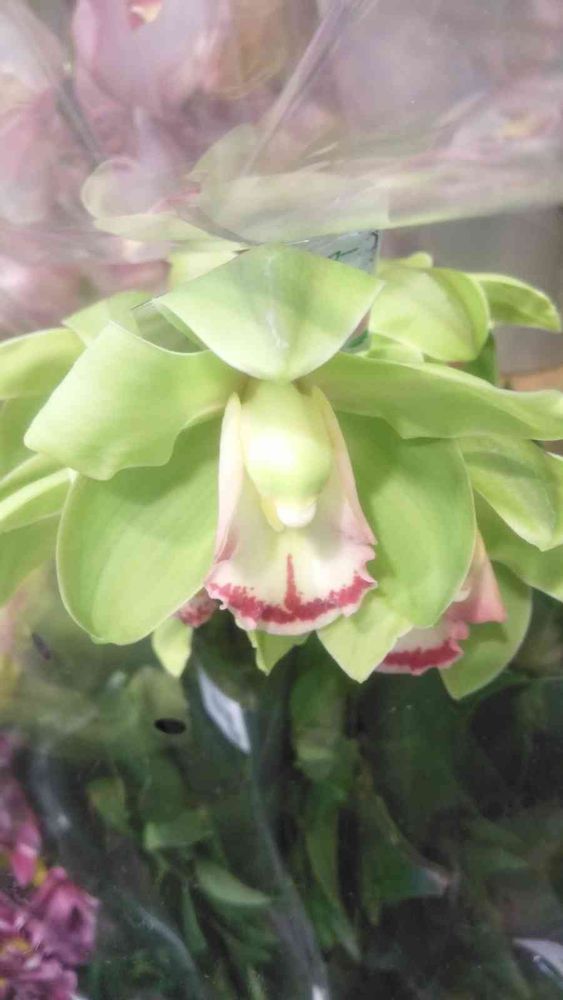 優しいグリーンにほんのりと赤✧\\ ٩( 'ω' )و //✧💚♥ シンビジウムのお仲間かな?