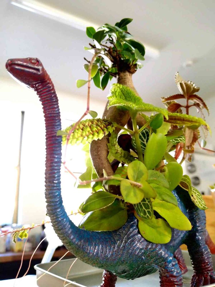 恐竜鉢の寄植え。