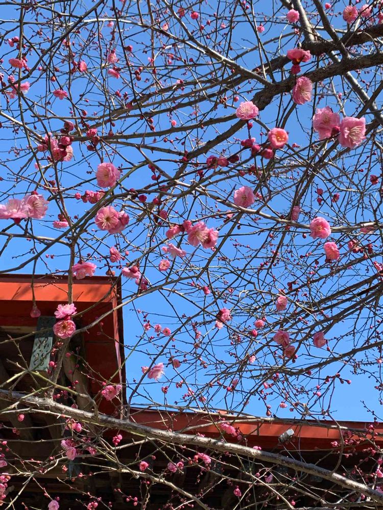 梅の花が満開の神社をみつけ
