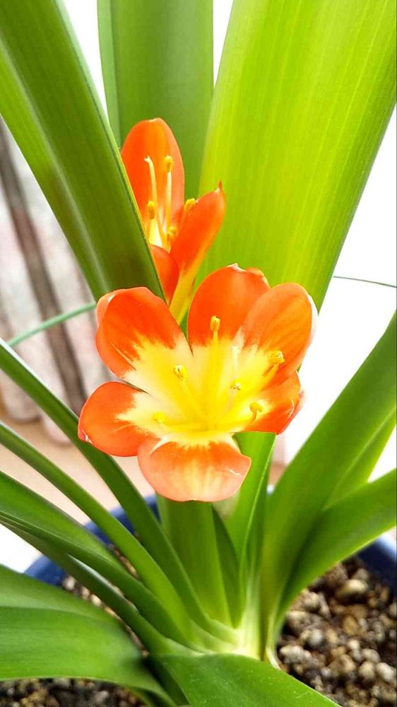 室内でずっと暖かかったので、花茎が伸びなかったみたいです😅