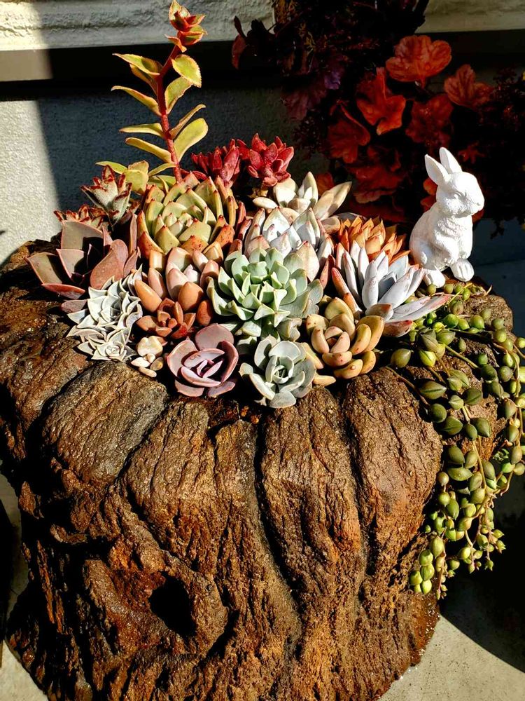 切り株の多肉ちゃんにうさぎちゃん、メルヘンチックですね〜✨