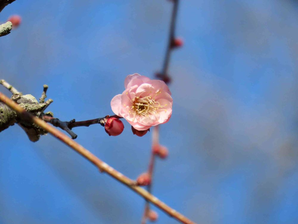幸い青空が綺麗なので ピンクの梅が