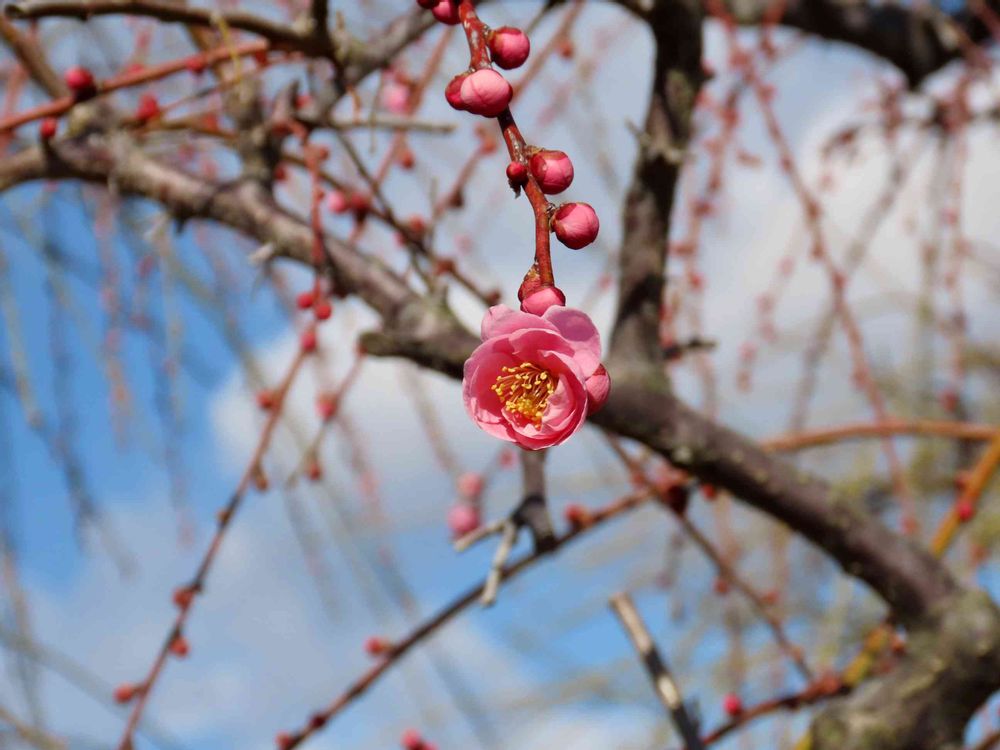 初めて一輪咲く梅を撮り