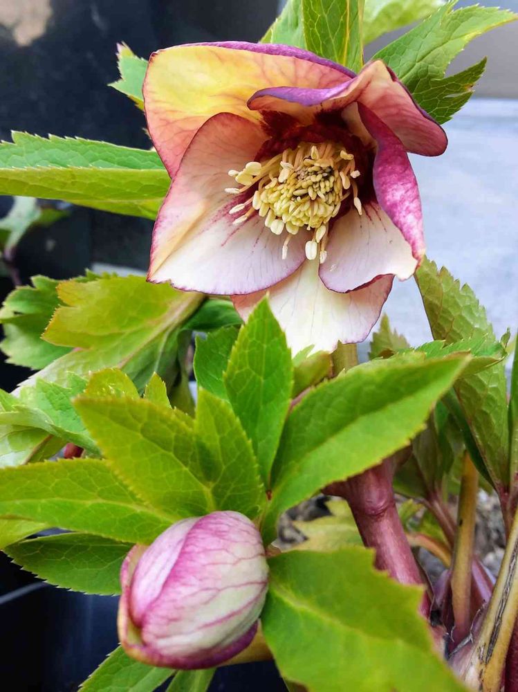 昔のクリスマスローズは黒っぽいのとか濃い紫の色のフラッシュとかベインが強くて、明るい色が少ない。