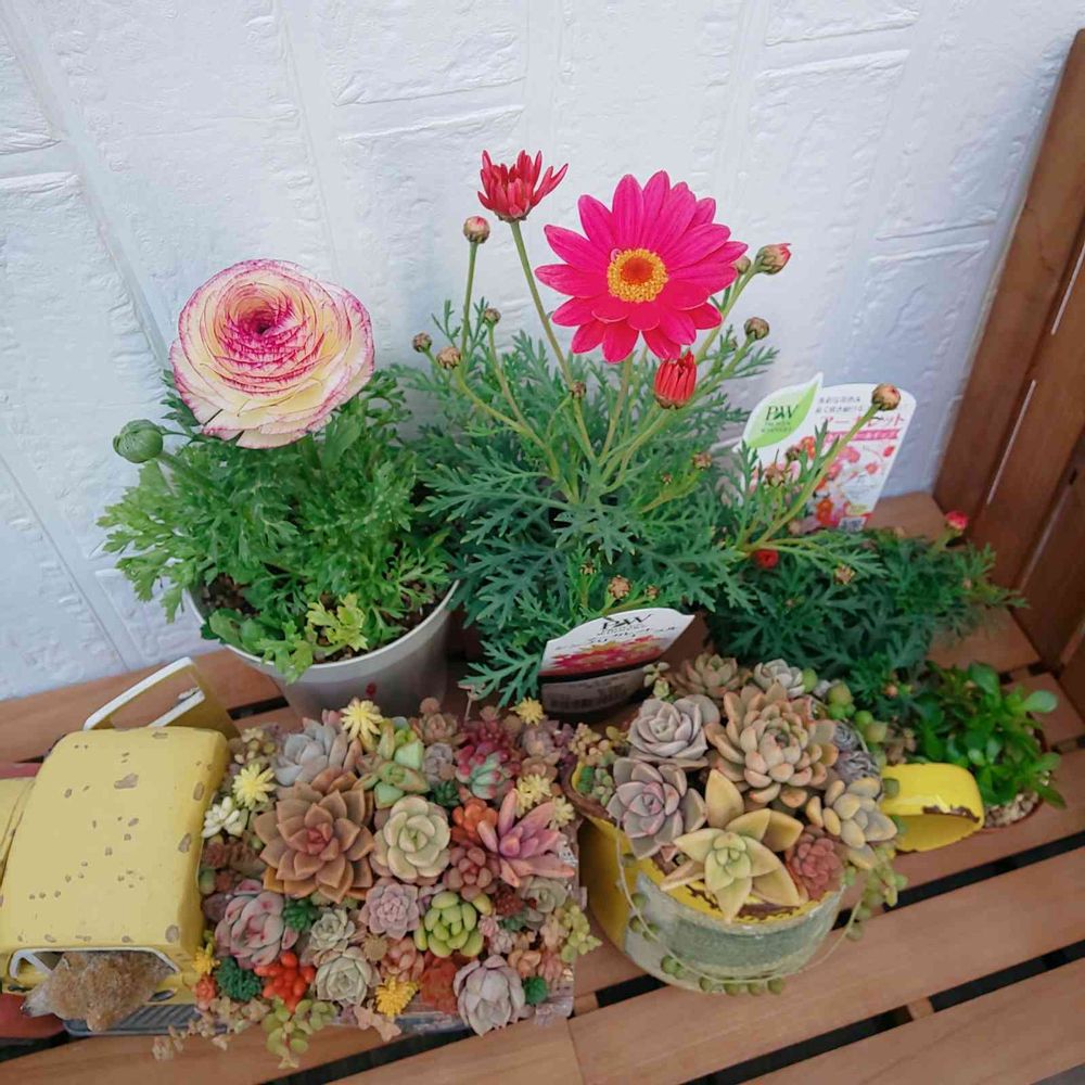 kikoriさんの小さな庭,ラナンキュラス,クラッスラ紅稚児の投稿画像