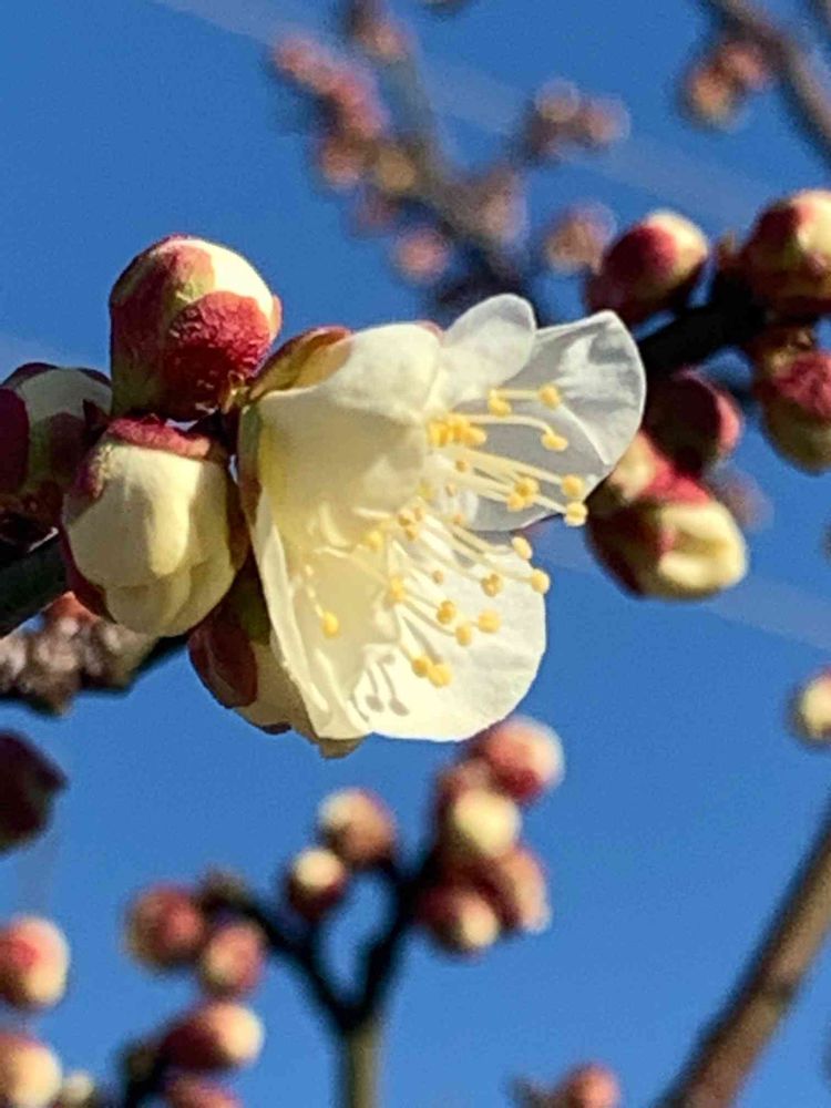やっと梅の花が一輪だけ開花しました!!