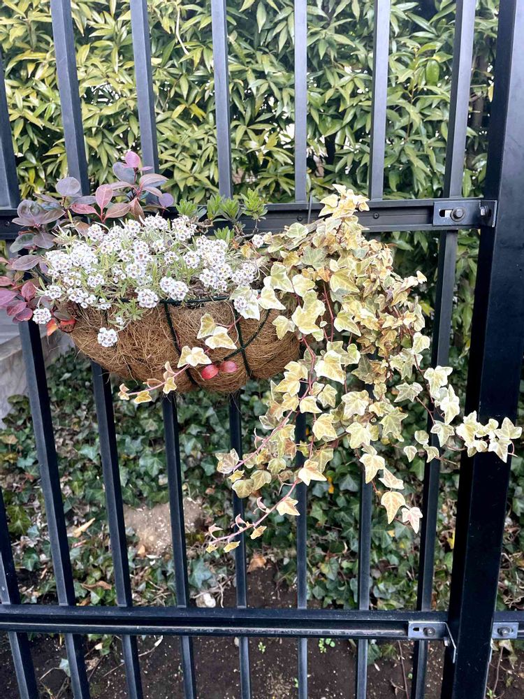 ずっとフェンスにかけっぱなしで寒いためか、ヘデラの葉が黄緑に😅