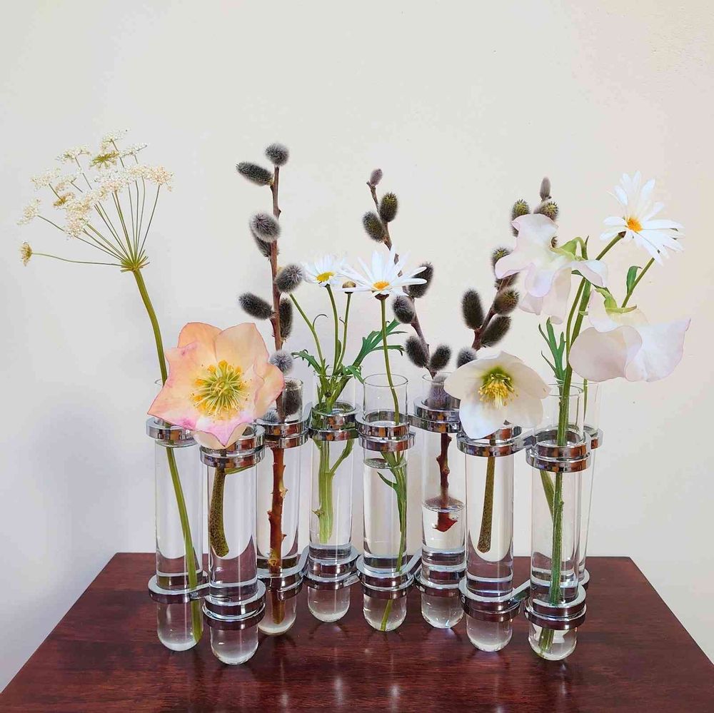 いけばなの生き残りと庭のお花を入れてみました。便利に使えそう🙆