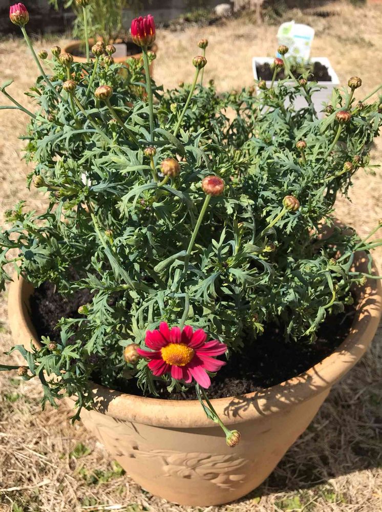今日は暖かかったのでマーガレットを鉢に植え替えしました。