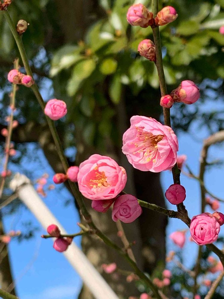 この日は、初めて行ったんだけど、梅に力を入れてる神社と聞いてて、晴れてたから息子の受験先に送り自宅まで帰るには1時間以上かかるし、神社の駐車場で時間潰ししてました。雪が心配だったので前の日からホテル泊まってエアコンうるさくて寝れず、自宅に帰る自信がなく、梅に癒されて静かな神社の駐車場で少し寝ながら空を見てました。🙋♀️