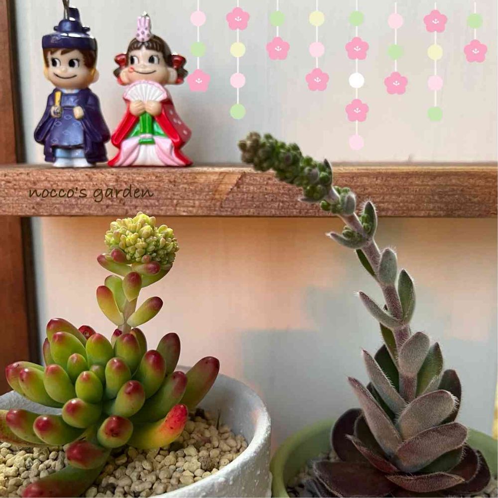 初めまして〜の多肉さんの蕾 ニョキニョキ伸びてるね😍