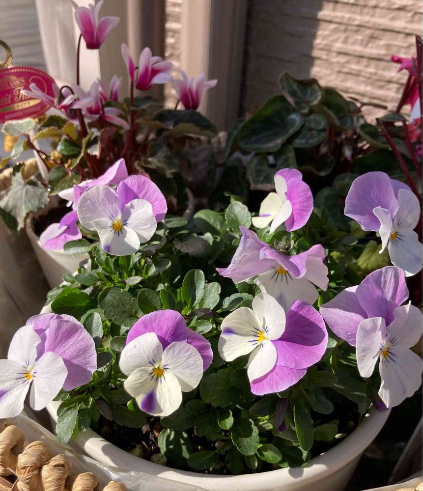 朝は寒さで縮んでいたビオラさんもにこにこ😊ワイワイ😍