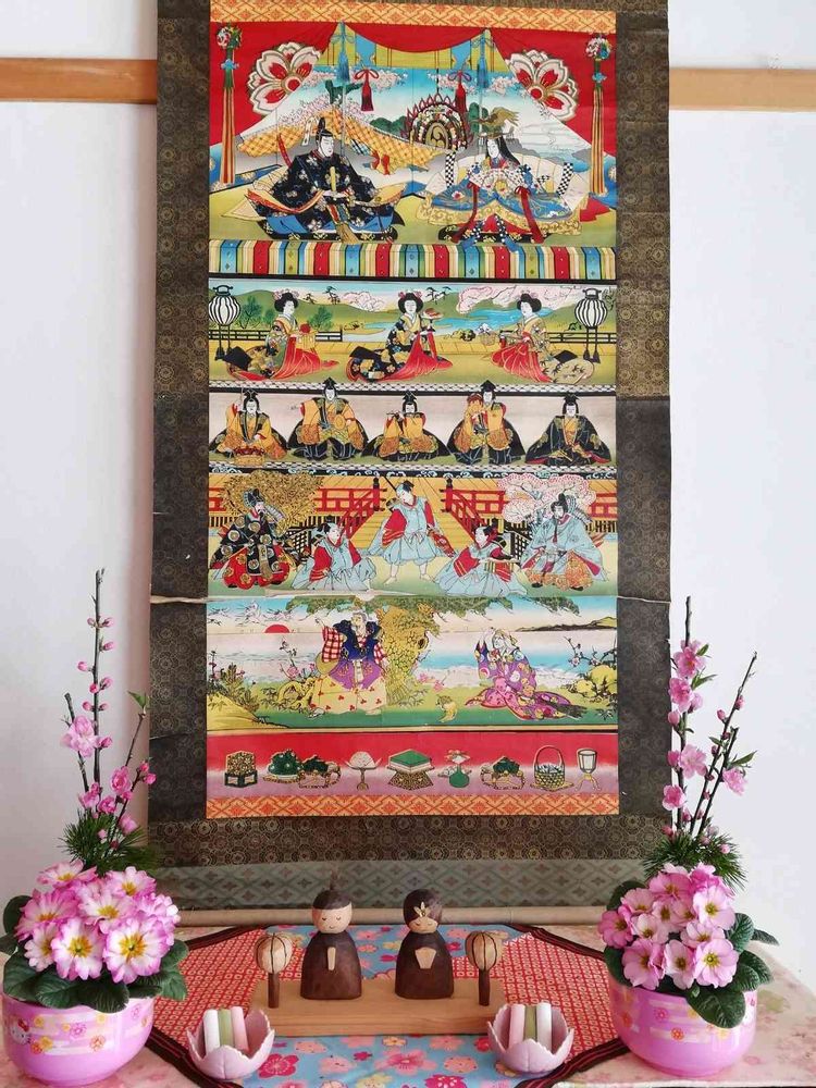 お雛様🎎の掛け軸は私達姉妹が初節句のお祝いに頂いた物です。