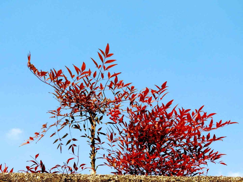 散策中に、通り道のお宅の塀から、南天が覗いていました。