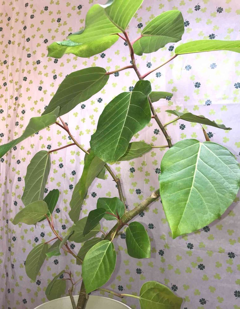 葉の裏側は柔らかいベルベットのような感触で、新芽の葉柄は赤くとても綺麗なフィカス・グランディスです🪴